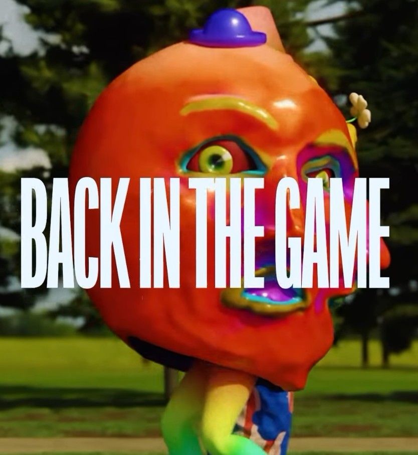 The video for the song was directed by Jonathan Zawada and he shared this about it: ““On first hearing the original demo of ‘Back in the Game’ I was immediately struck by the deranged bassline that made me think of the final scene of Staying Alive where John Travolta is cockily strutting through the New York streets but I saw it with a more sinister overlay. Slowly a version of that visual arose around a character wearing a kind of giant parade head with a fixed expression of mania stuck on their face, such that you couldn’t tell if their endless march was one of aggression or celebration. The more I paid attention to the lyrics the more details began to fill themselves out and the overall concept began to form of a parade of many characters marching past a building from within which everything was being thrown out of a window and into a giant bonfire. Ultimately the film for ‘Back in the Game’ ended up depicting a sort of blind celebration taking place as civilization slowly deteriorates around it, a kind of progression through regression. Overlaid onto this is an exploration of how and where we choose to place value in our collective cultural expression and how we collectively confront major cultural shifts in the 21st century.”